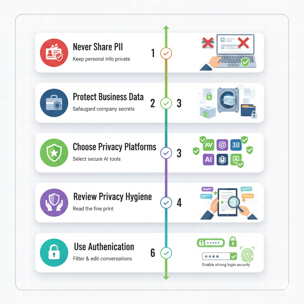 Treat each conversation with an AI tool as if it might be public. This mindset naturally encourages better privacy practices.